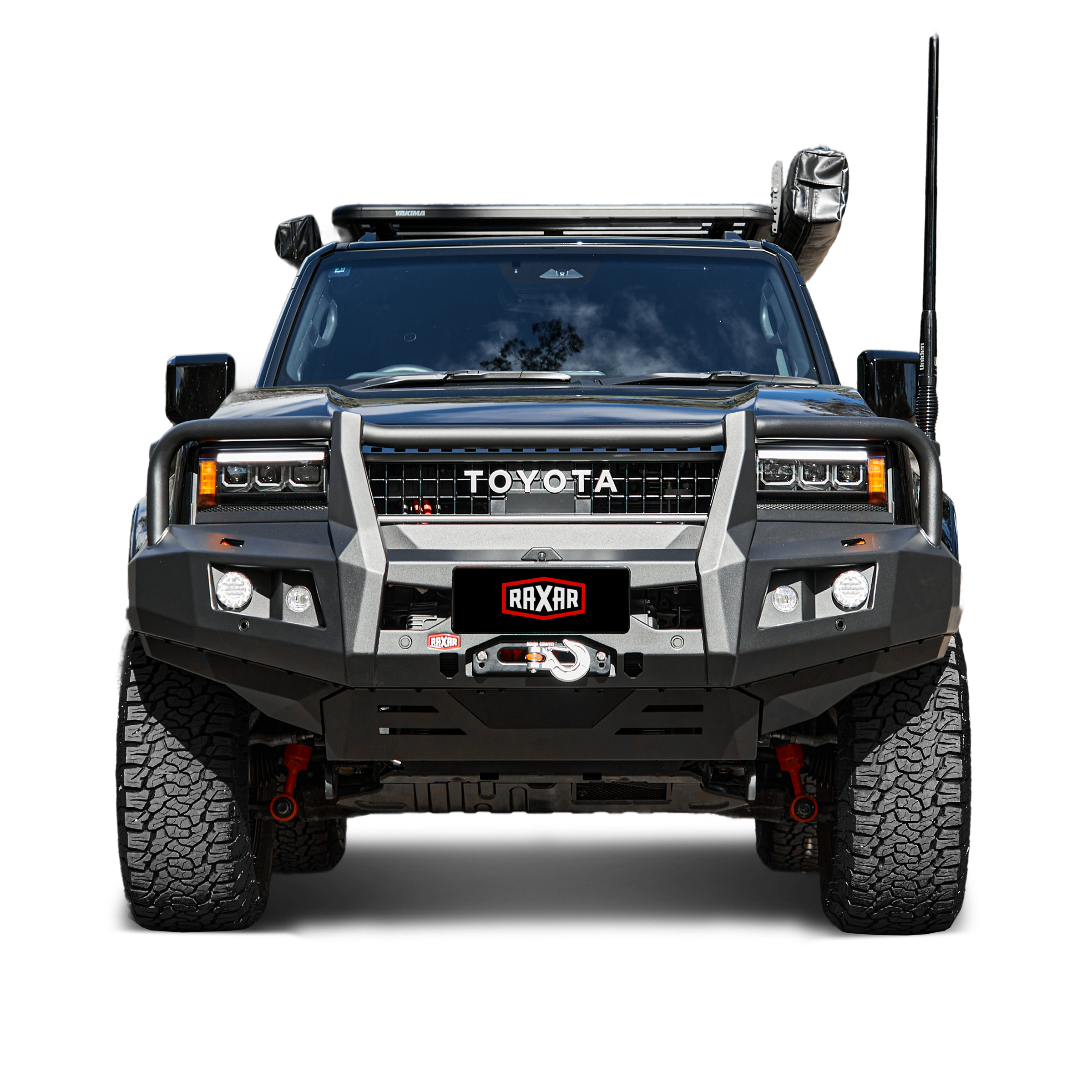 The RAXAR Bull Bar is an essential upgrade for Prado owners seeking durability, safety, and a premium aesthetic.